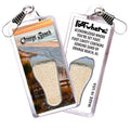 An authentic Orange Beach, Alabama FootWhere® souvenir zipper-pull containing the genuine sand of Orange Beach inside of foot cavity. Made in USA of high-quality acrylic with high-resolution graphic inserts showcasing the featured destination on the front and back. Protected for life between ultrasonically-welded halves. Great clip-on accessory for purses, backpacks, book bags, sports bags and luggage I.D.