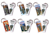 An ensemble of authentic Grand Canyon, Arizona FootWhere® souvenir keychains acknowledging where you've actually set foot. Foot cavity is filled with genuine Grand Canyon, AZ soil. Made of high-quality acrylic with high-resolution graphic insert showcasing the featured destination on the front and back. Protected for life between ultrasonically-welded halves.