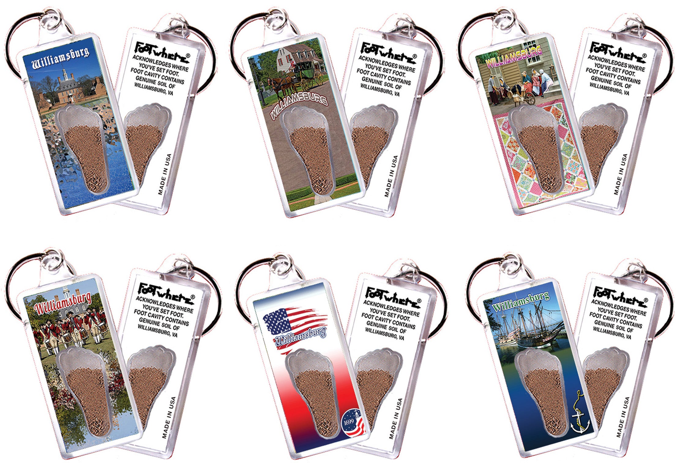 Williamsburg, VA FootWhere® Souvenir Key Chain. 72 pieces/6 assorted styles.