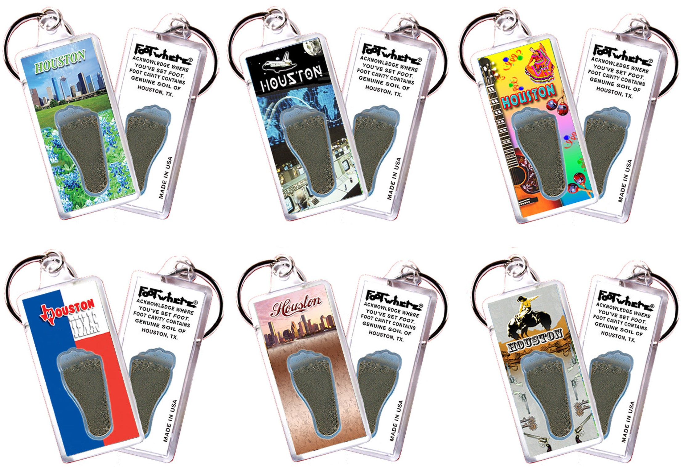 Houston FootWhere® Souvenir Keychain. 72 pieces/6 assorted styles.
