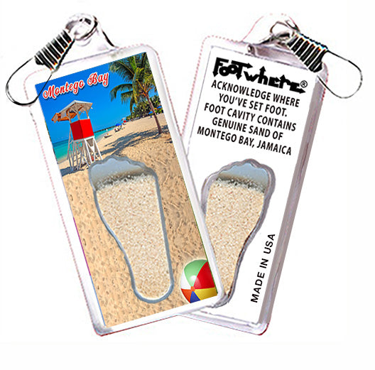 Montego Bay FootWhere® Souvenir Keychain. Made in USA