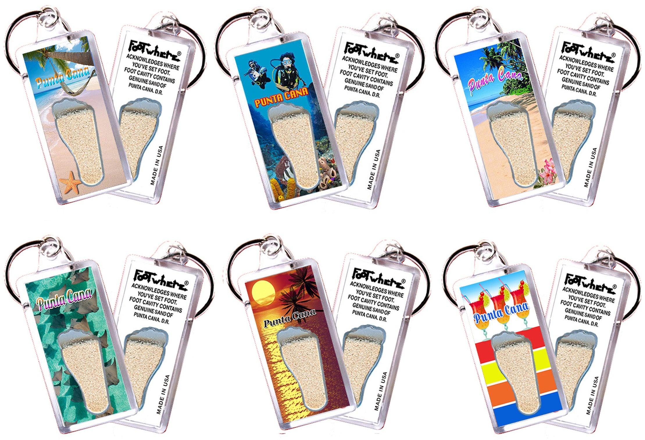 Punta Cana FootWhere® Souvenir Keychains. 6 Piece Set. Made in USA