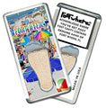 An authentic Fort Myers, Florida FootWhere® souvenir magnet containing the genuine sand of Fort Myers, FL inside of foot cavity. Made in USA of high-quality acrylic with high-resolution graphic inserts showcasing the featured destination on the front and back. Protected for life between ultrasonically-welded halves. Great clip-on accessory for purses, backpacks, book bags, sports bags and luggage I.D.