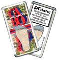 An authentic Cabo San Lucas, Mexico FootWhere® souvenir fridge magnet containing the genuine beach sand of Cabo San Lucas inside of foot cavity. Made in USA of high-quality acrylic with high-resolution graphic inserts showcasing the featured destination on the front and back. Protected for life between ultrasonically-welded halves.