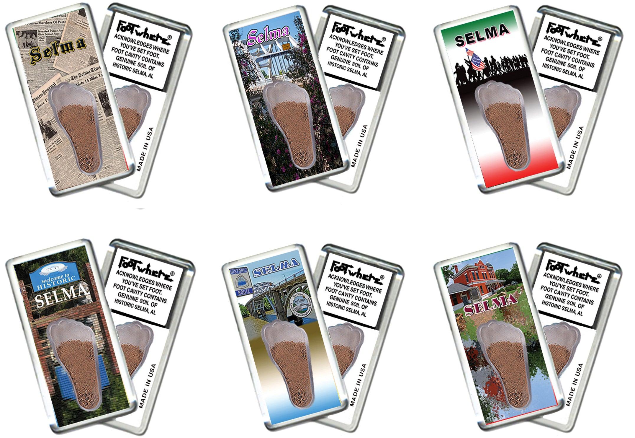 Selma FootWhere® Souvenir Fridge Magnets. 6 Piece Set. Made in USA