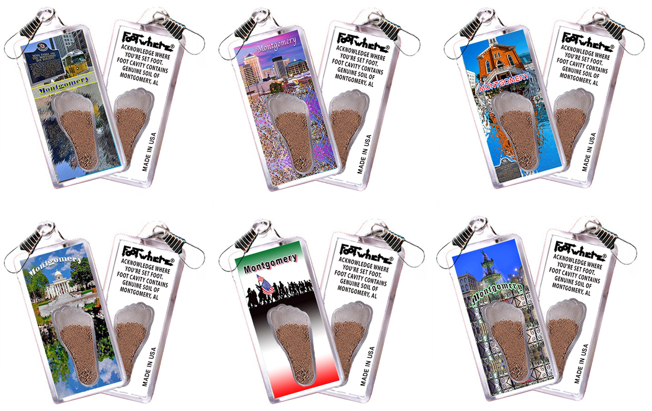 Montgomery FootWhere® Souvenir Keychains. 6 Piece Set. Made in USA