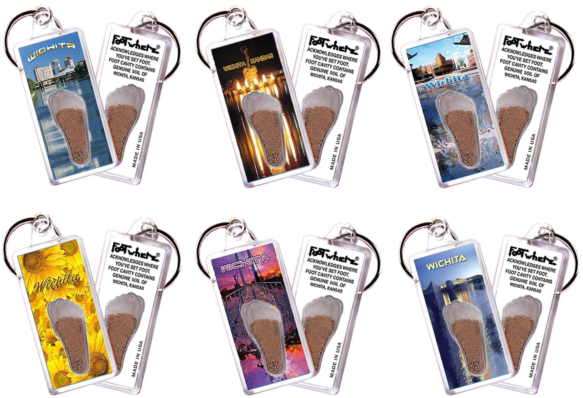 Wichita FootWhere® Souvenir Keychains. 6 Piece Set. Made in USA