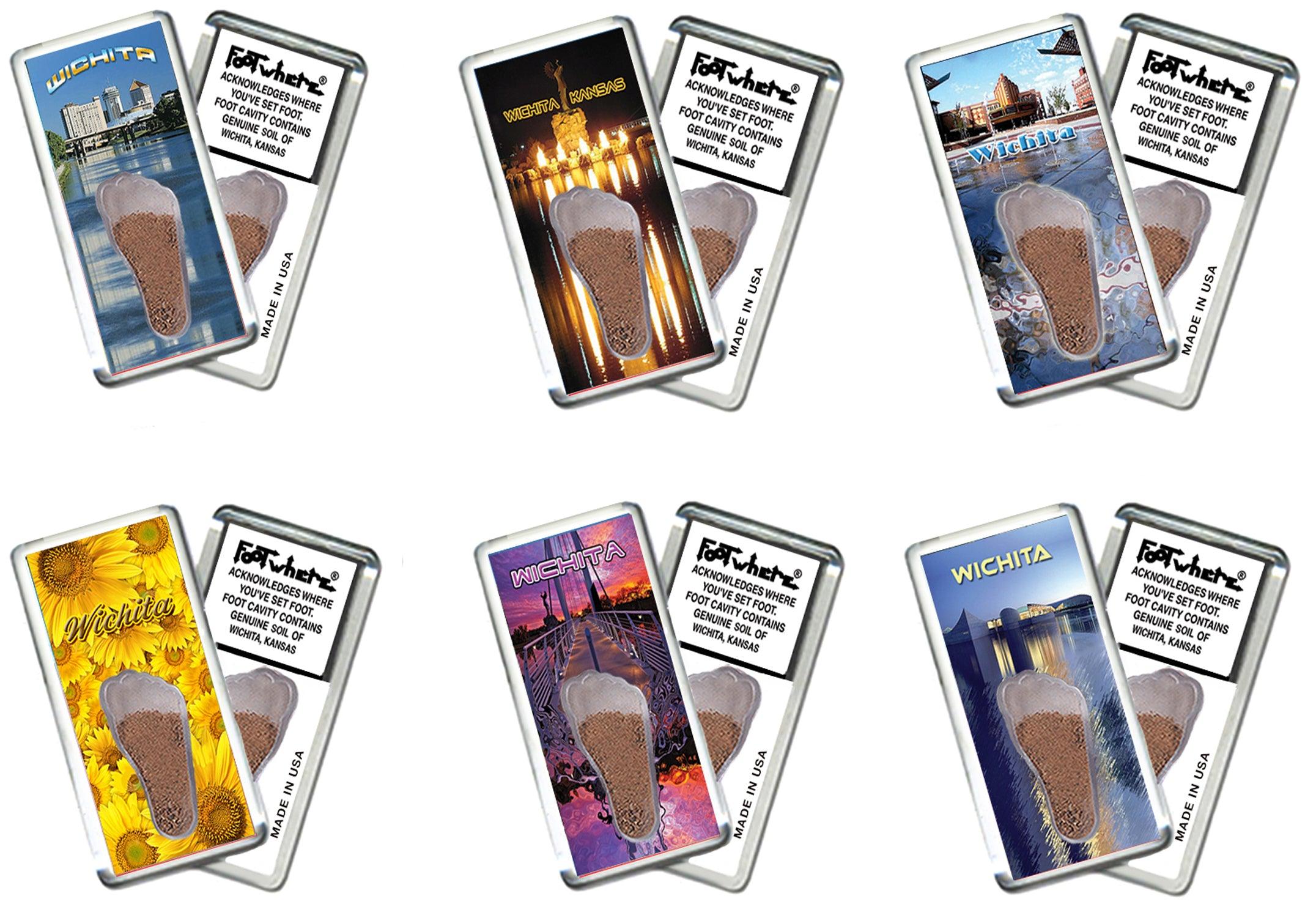 Wichita FootWhere® Souvenir Fridge Magnets. 6 Piece Set. Made in USA