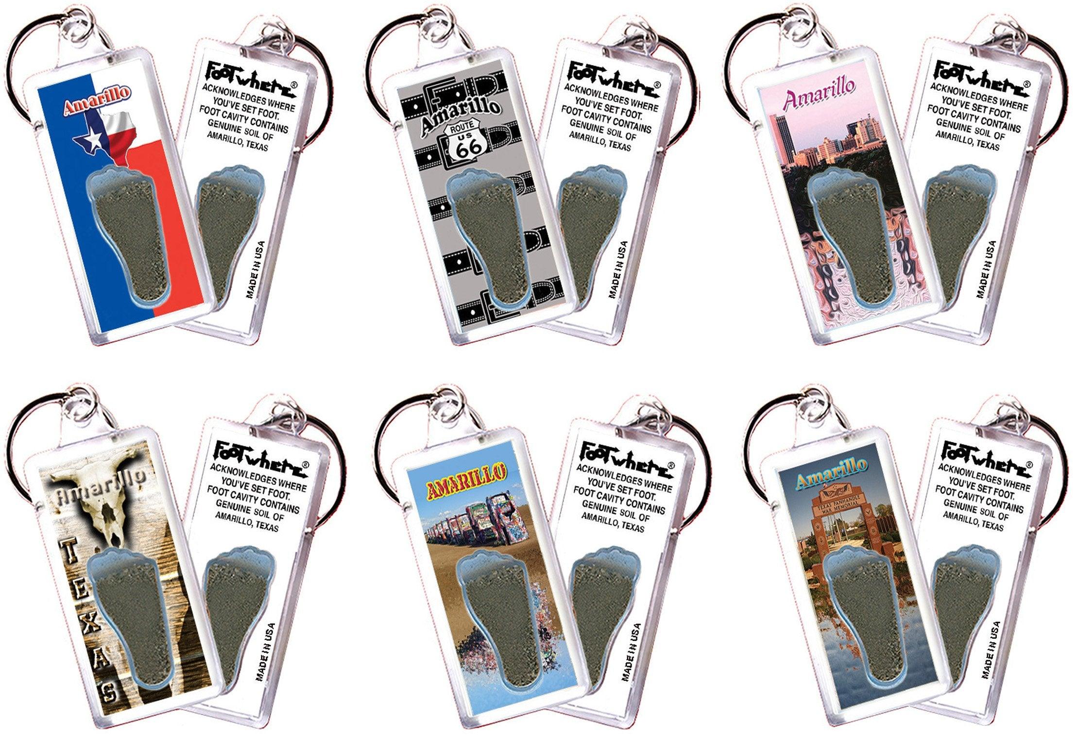 Amarillo FootWhere® Souvenir Keychains. 6 Piece Set. Made in USA