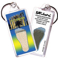An authentic Athens, Greece "FootWhere" souvenir keychain containing the genuine soil of Athens inside foot cavity. Made of high-quality acrylic with high-resolution graphic inserts showcasing the featured destination on the front and back. Protected for life between ultrasonically-welded halves.