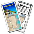 An authentic Anguilla FootWhere® souvenir fridge magnet containing the genuine beach sand of Anguilla inside of foot cavity. Made in USA of high-quality acrylic with high-resolution graphic inserts showcasing the featured destination on the front and back. Protected for life between ultrasonically-welded halves.