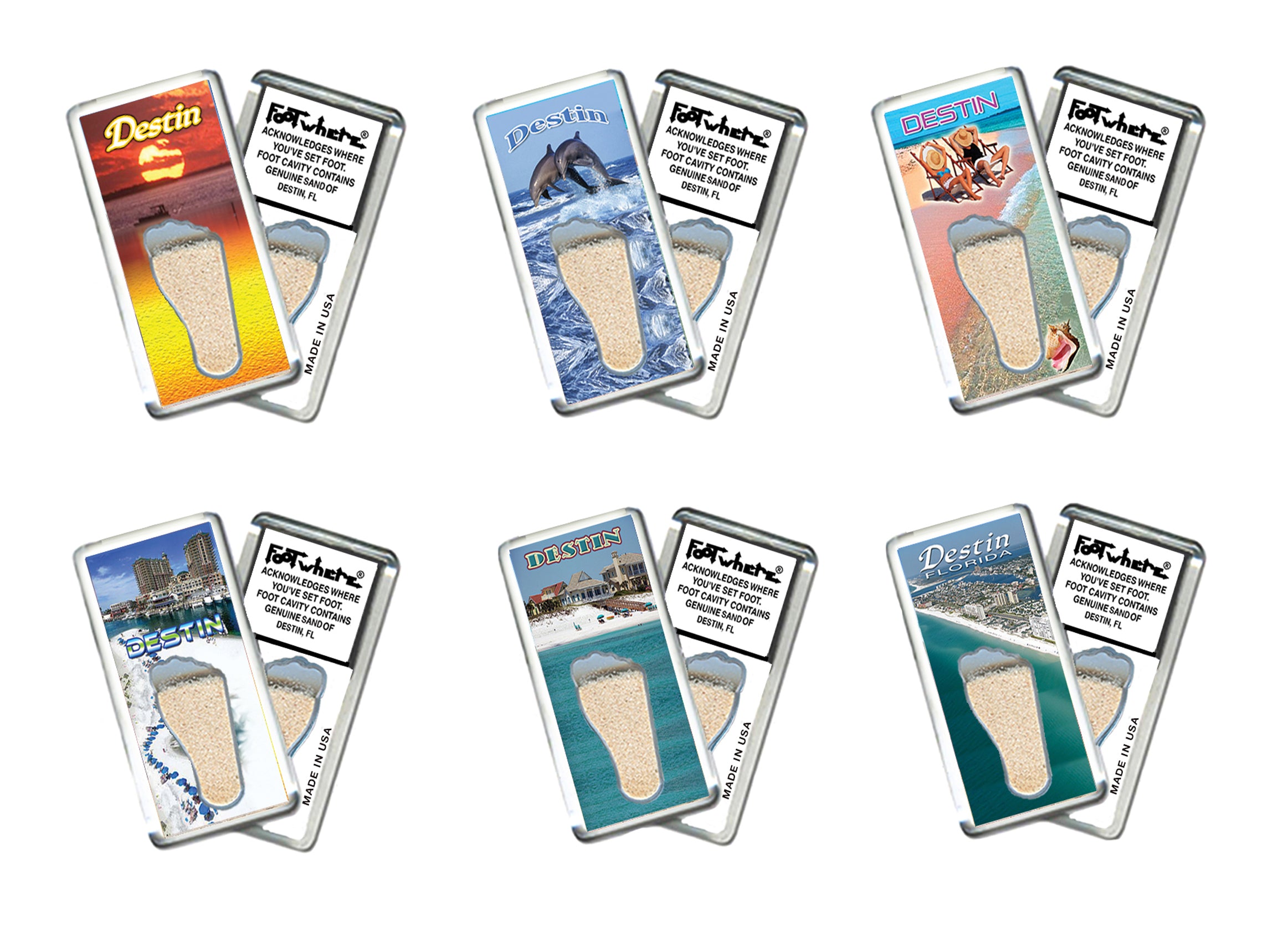 Destin, FL FootWhere® Souvenir Magnet. 72 pieces/ 6 assorted styles.