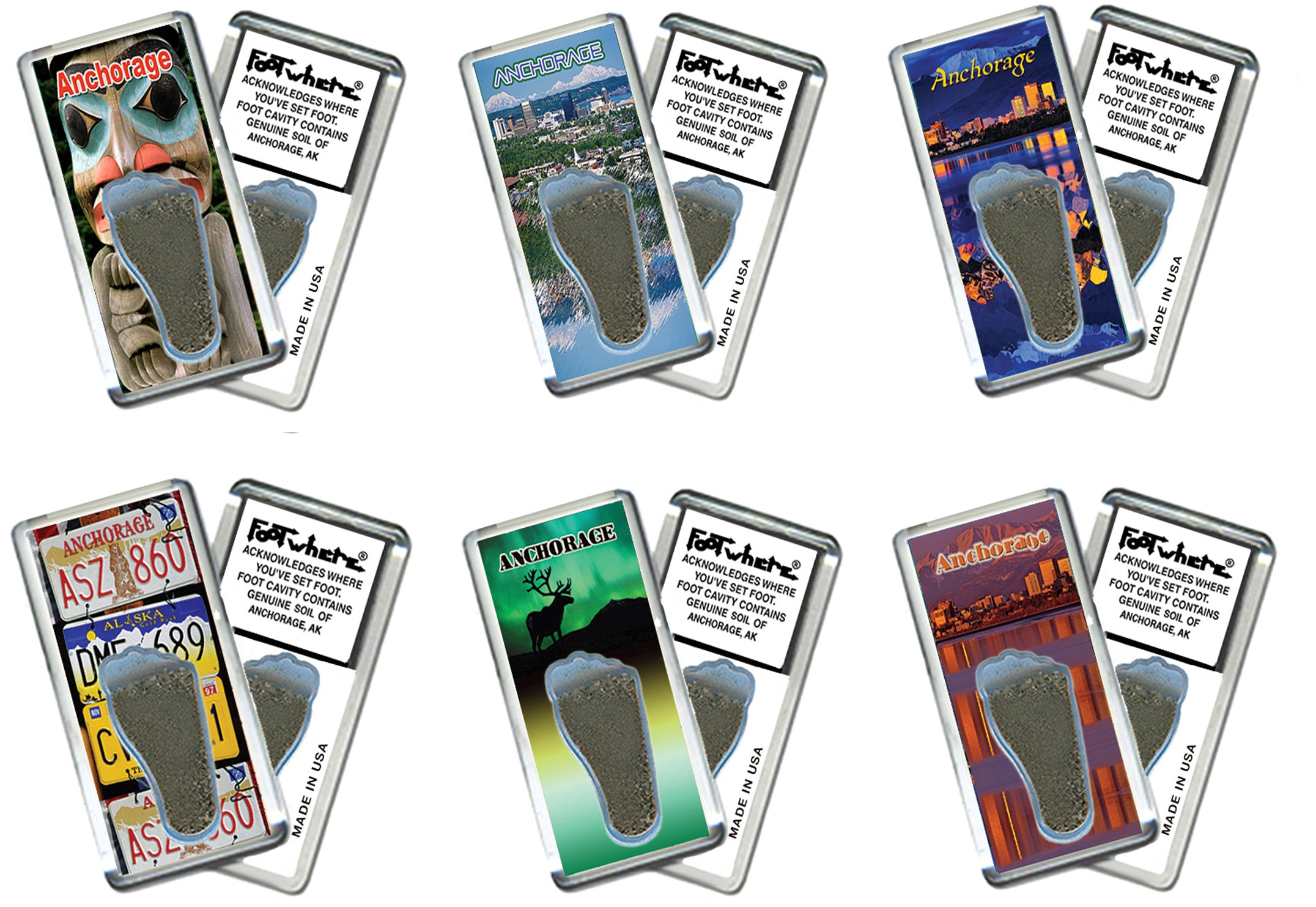 Anchorage FootWhere® Souvenir Magnets. 72 pieces/6 assorted styles.