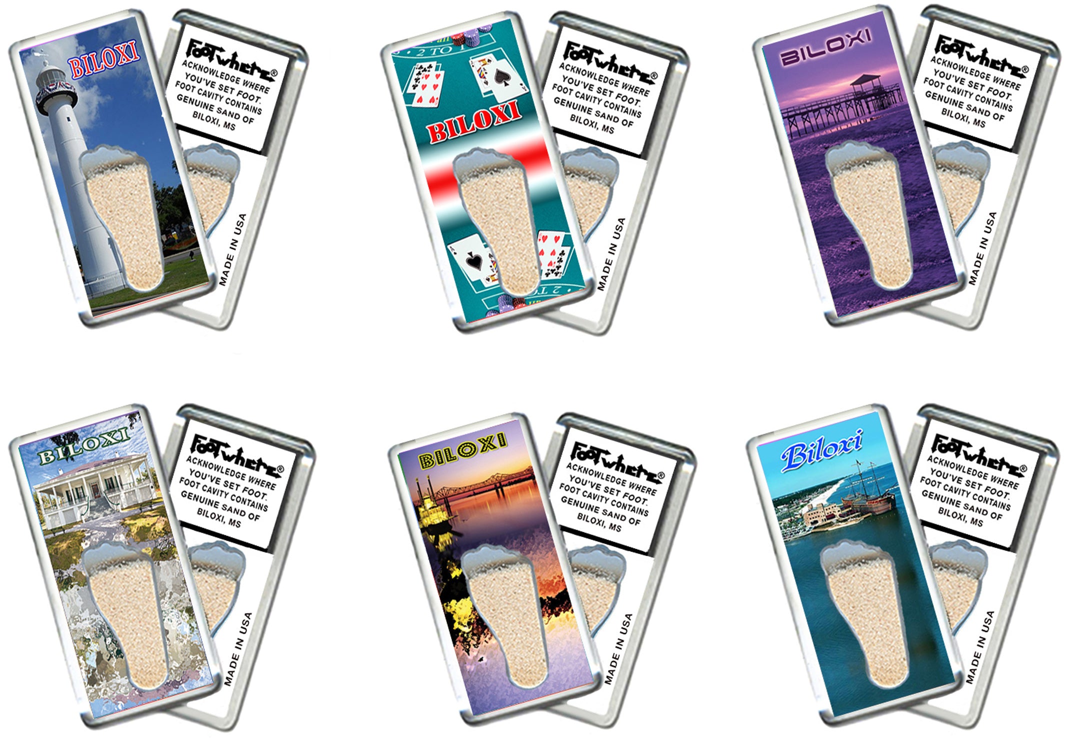 Biloxi FootWhere® Souvenir Magnets. 72 pieces/6 assorted styles.