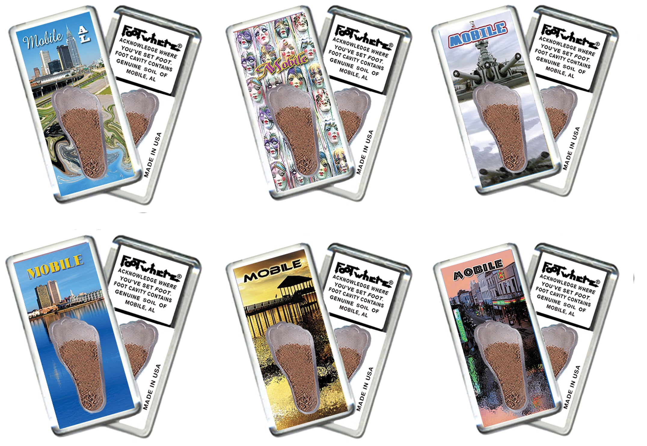 Mobile FootWhere® Souvenir Magnets. 72 pieces/6 assorted styles.