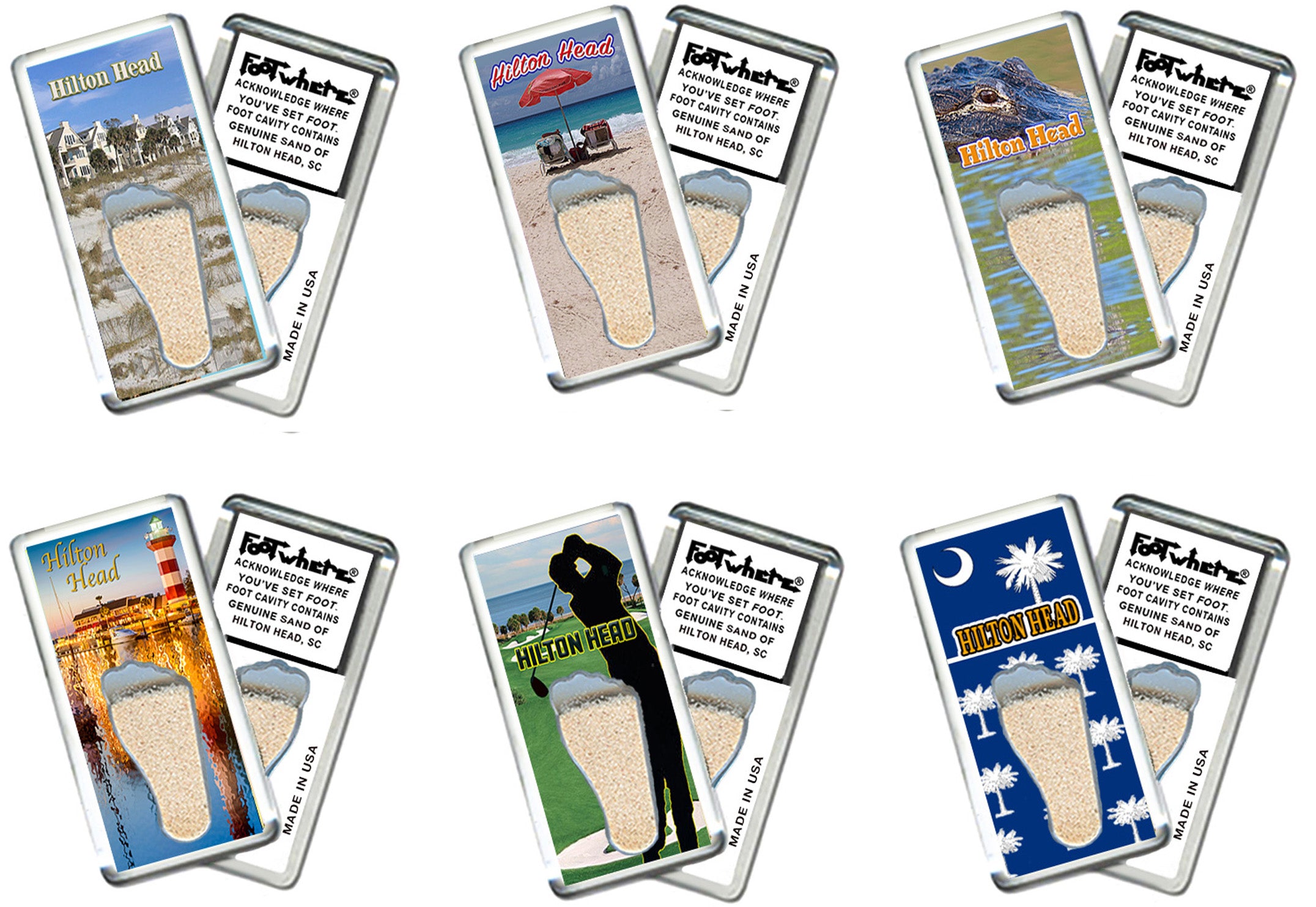 Hilton Head FootWhere® Souvenir Magnet. 72 pieces/6 assorted styles.