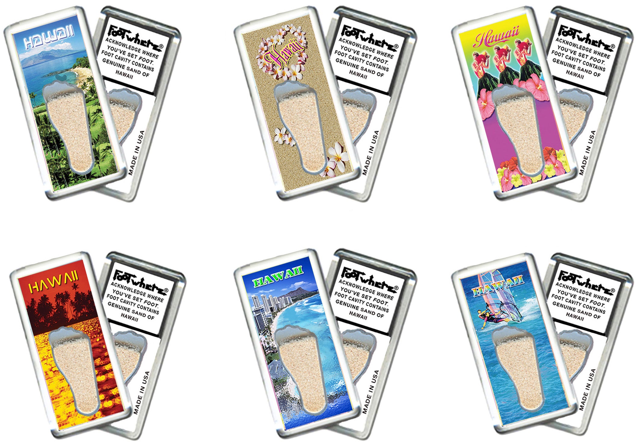 Hawaii FootWhere® Souvenir Magnet. 72 pieces/6 assorted styles.