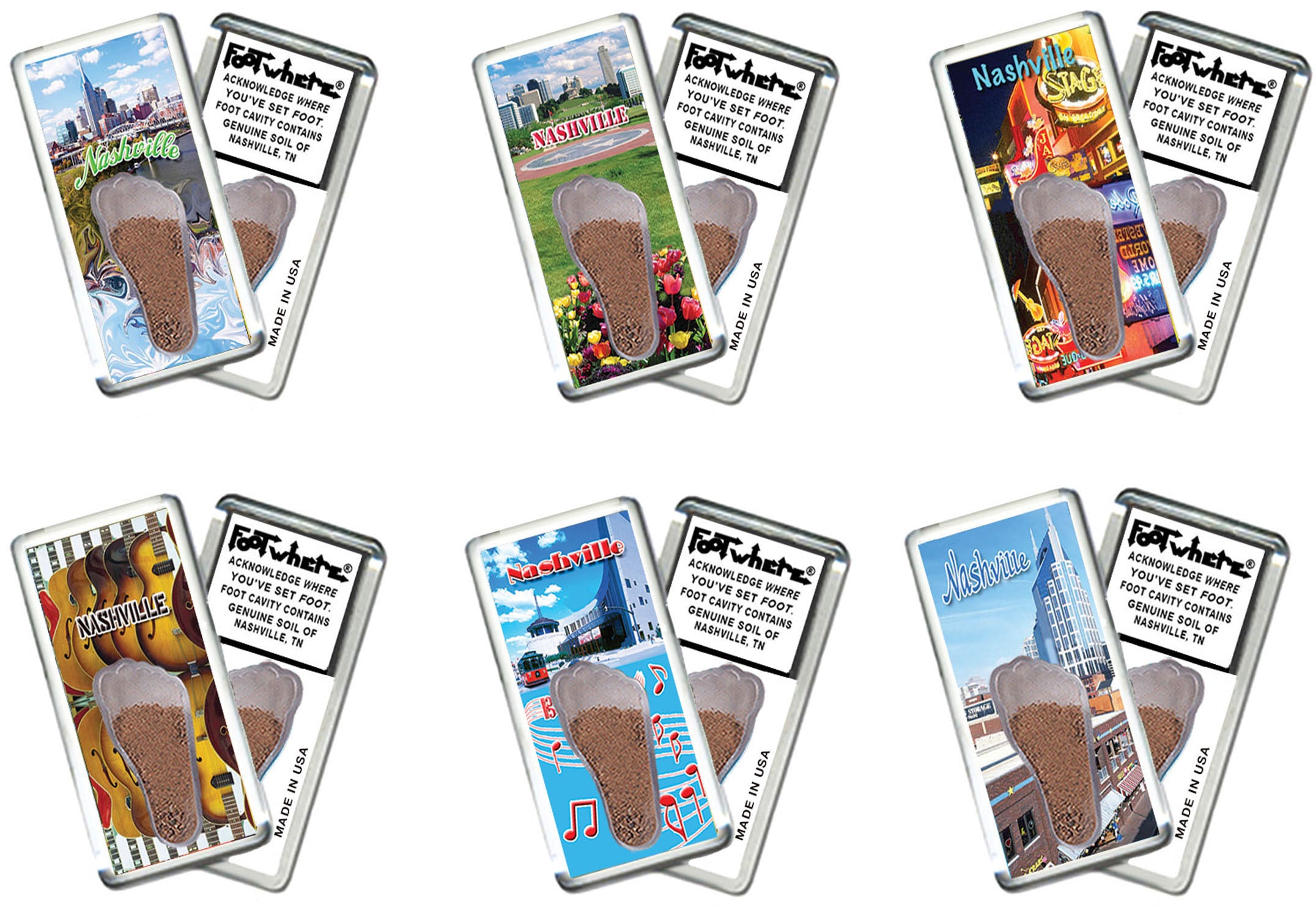 Nashville FootWhere® Souvenir Magnets. 6 Piece Set. Made in USA