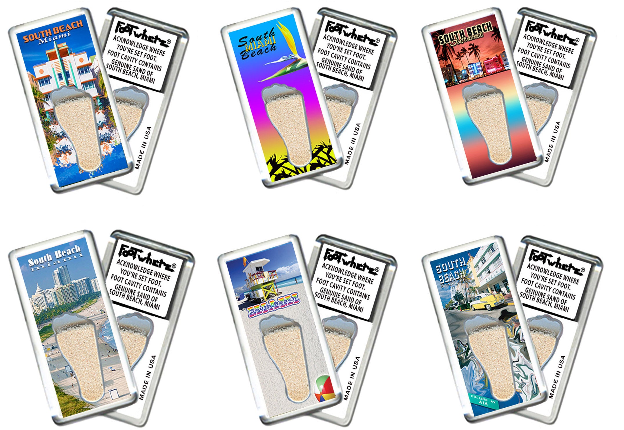 South Beach Miami FootWhere® Souvenir Magnet. 72 pieces/ 6 assorted styles.