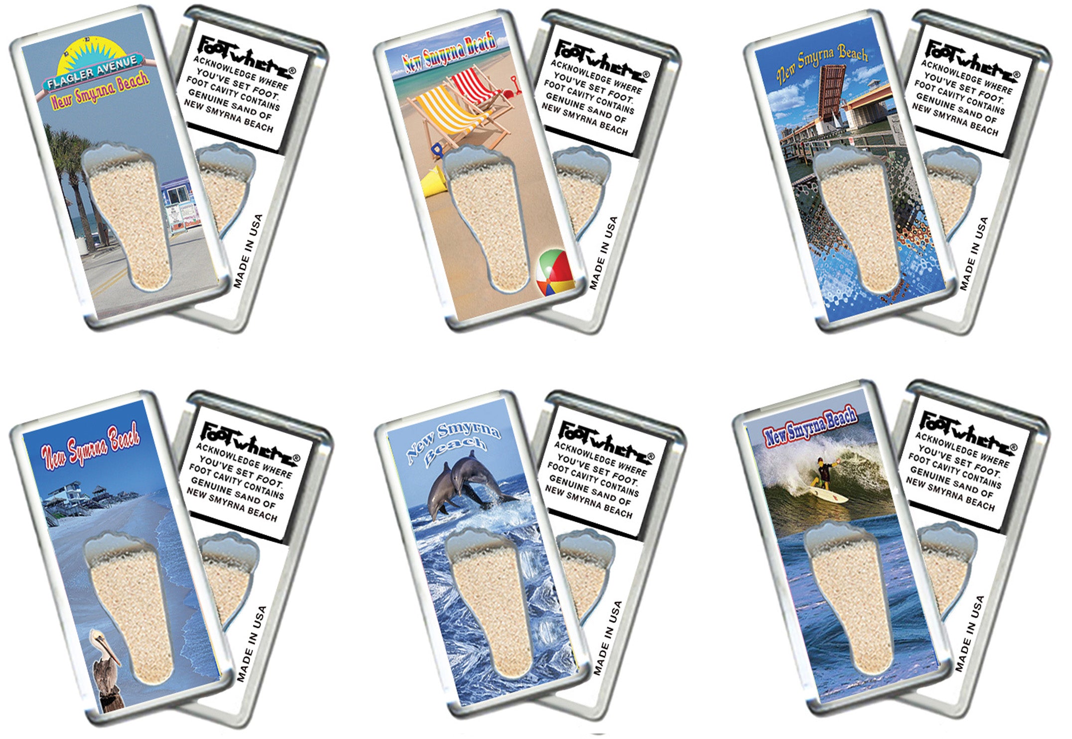 New Smyrna Beach FootWhere® Souvenir Fridge Magnets. 6 Piece Set. Made in USA