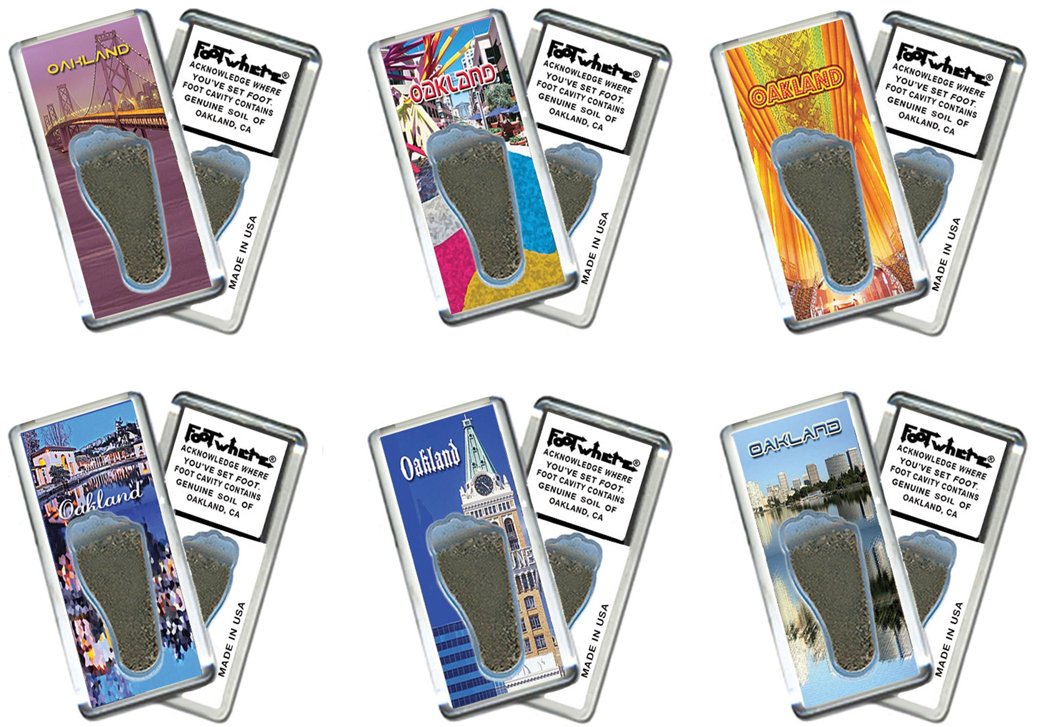 Oakland FootWhere® Souvenir Magnets. 6 Piece Set. Made in USA