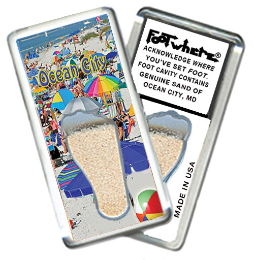 Ocean City FootWhere® Souvenir Magnets. 6 Piece Set. Made in USA