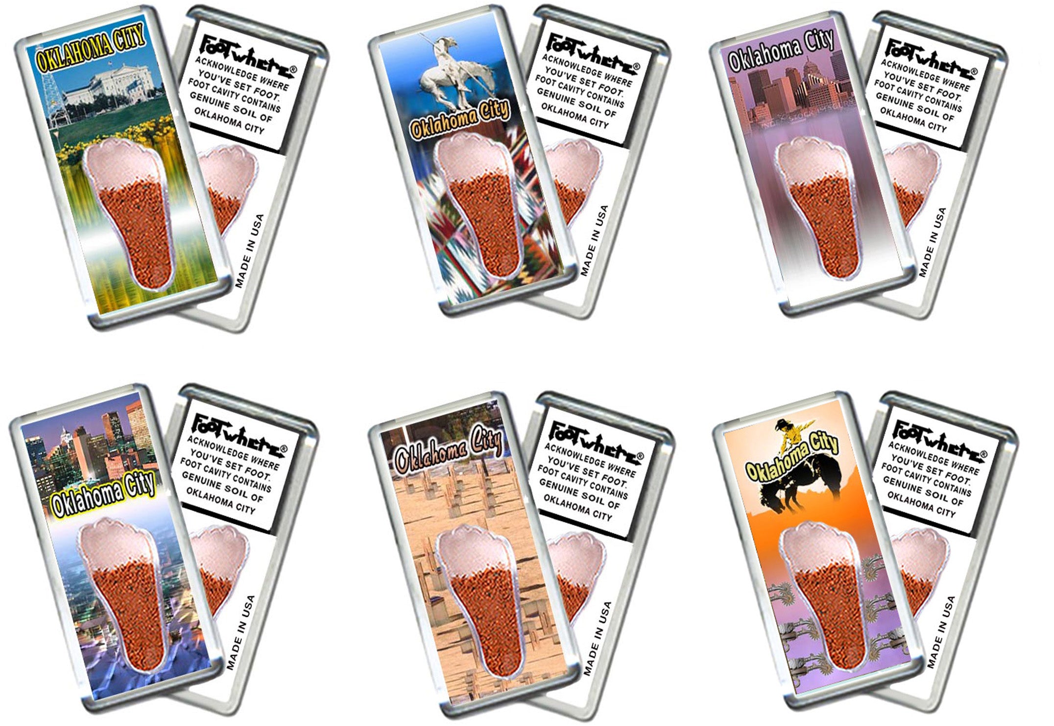 Oklahoma City FootWhere® Souvenir Magnets. 6 Piece Set. Made in USA