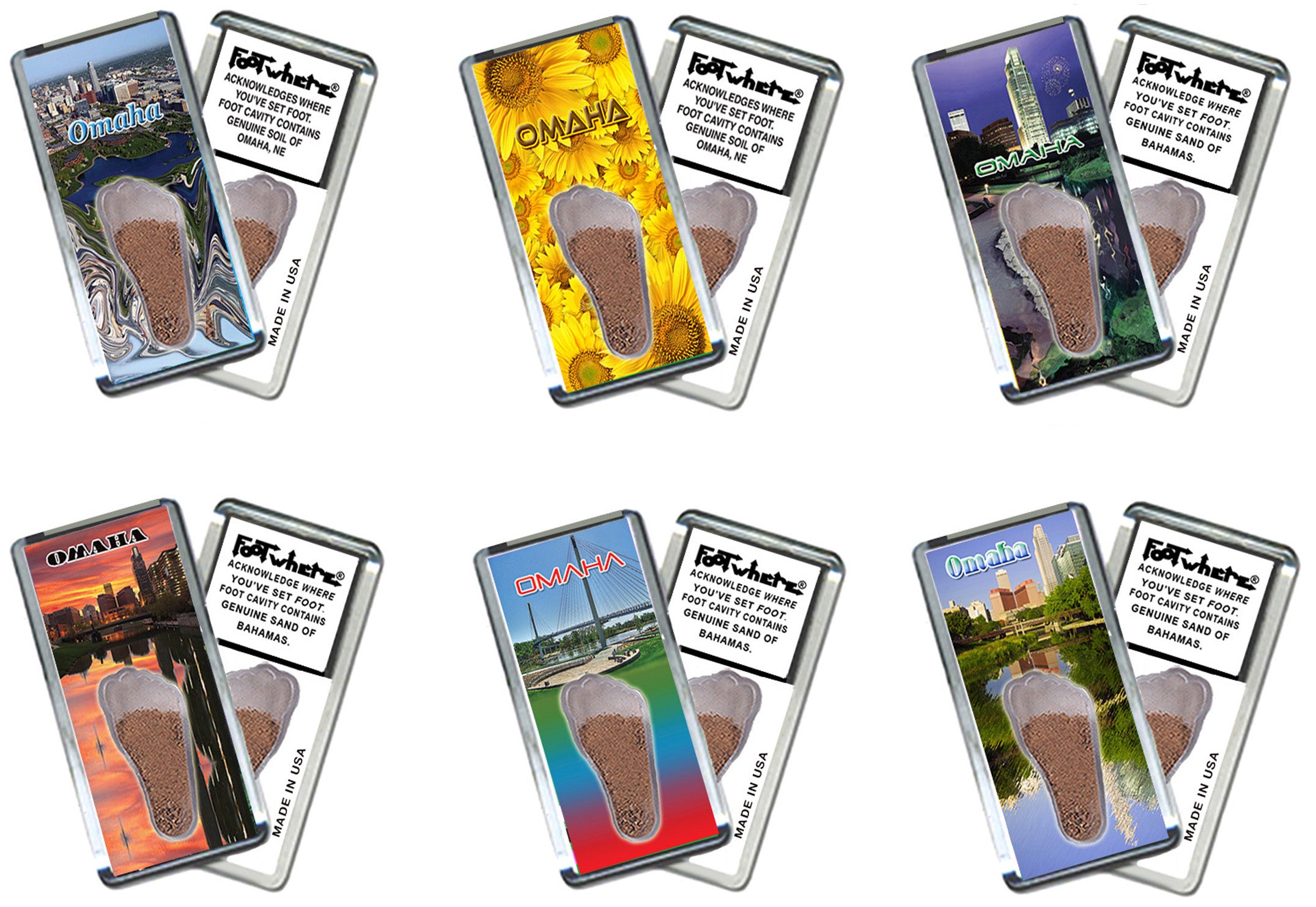 Omaha FootWhere® Souvenir Magnets. 6 Piece Set. Made in USA