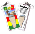 An authentic Cancun, Mexico FootWhere® souvenir zipper-pulls containing the genuine beach sand of Cancun, MX inside of foot cavity. Made in USA of high-quality acrylic with high-resolution graphic inserts showcasing the featured destination on the front and back. Protected for life between ultrasonically-welded halves. Great clip-on accessory for purses, luggage I.D., book bags, backpacks, sports bag, etc.
