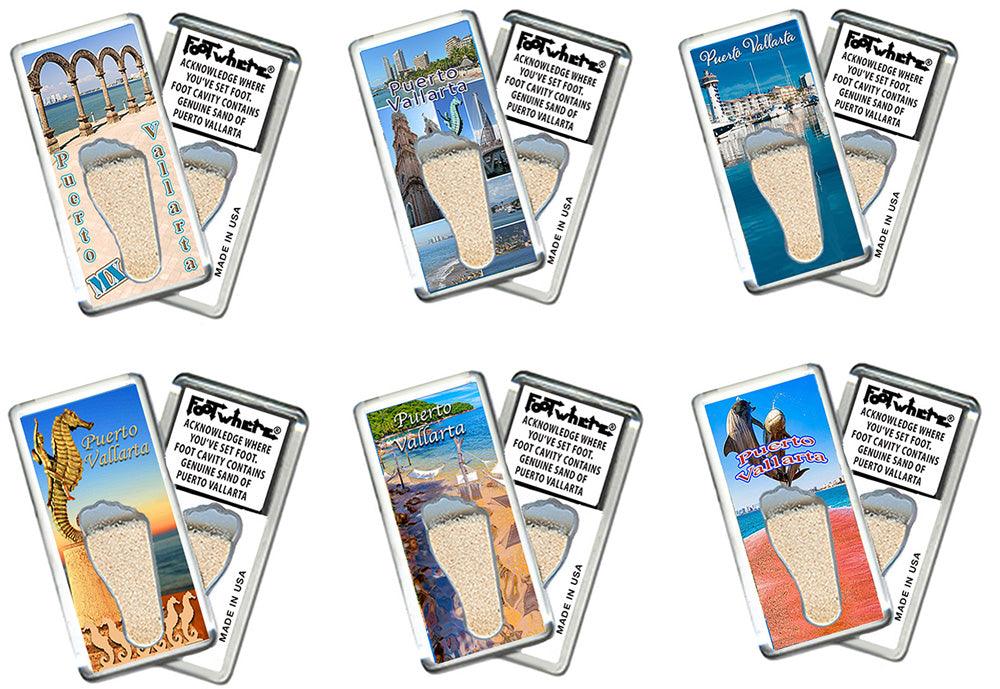 Puerto Vallarta FootWhere® Souvenir Fridge Magnets. 6 Piece Set. Made in USA