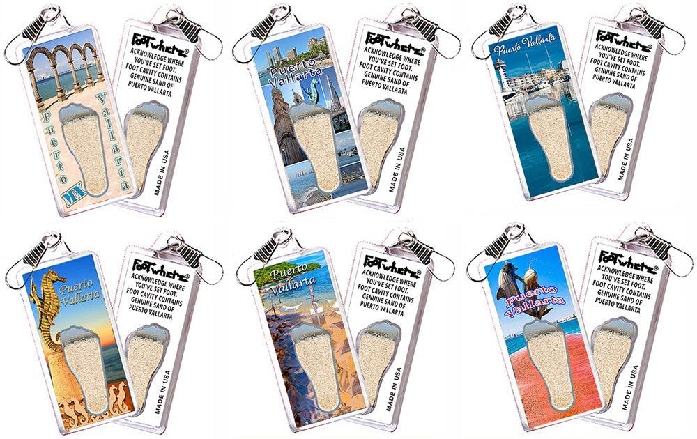 Puerto Vallarta FootWhere® Souvenir Keychains. 6 Piece Set. Made in USA