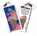 Authentic location souvenir acknowledges where you've actually set foot. Foot cavity is filled with genuine Pennsylvania soil. High-quality acrylic with high-resolution graphic insert showcasing the featured destination on the front and back. Protected for life between ultrasonically-welded halves. Great item for luggage I.D., book bags, backpack and purse clip-on.