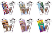 An ensemble of authentic Philadelphia, Philadelphia FootWhere® souvenir zipper-pulls acknowledging where you've actually set foot. Foot cavity is filled with genuine Philadelphia, PA soil. Made of high-quality acrylic with high-resolution graphic insert showcasing the featured destination on the front and back. Protected for life between ultrasonically-welded halves. Great clip-on accessory for purses, backpacks, book bags, sports bags and luggage I.D.