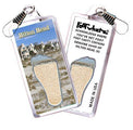 An authentic Hilton Head, South Carolina FootWhere® souvenir zipper-pull/lanyard containing the genuine beach sand of Hilton Head, SC inside of foot cavity. Made in USA of high-quality acrylic with high-resolution graphic inserts showcasing the featured destination on the front and back. Protected for life between ultrasonically-welded halves.