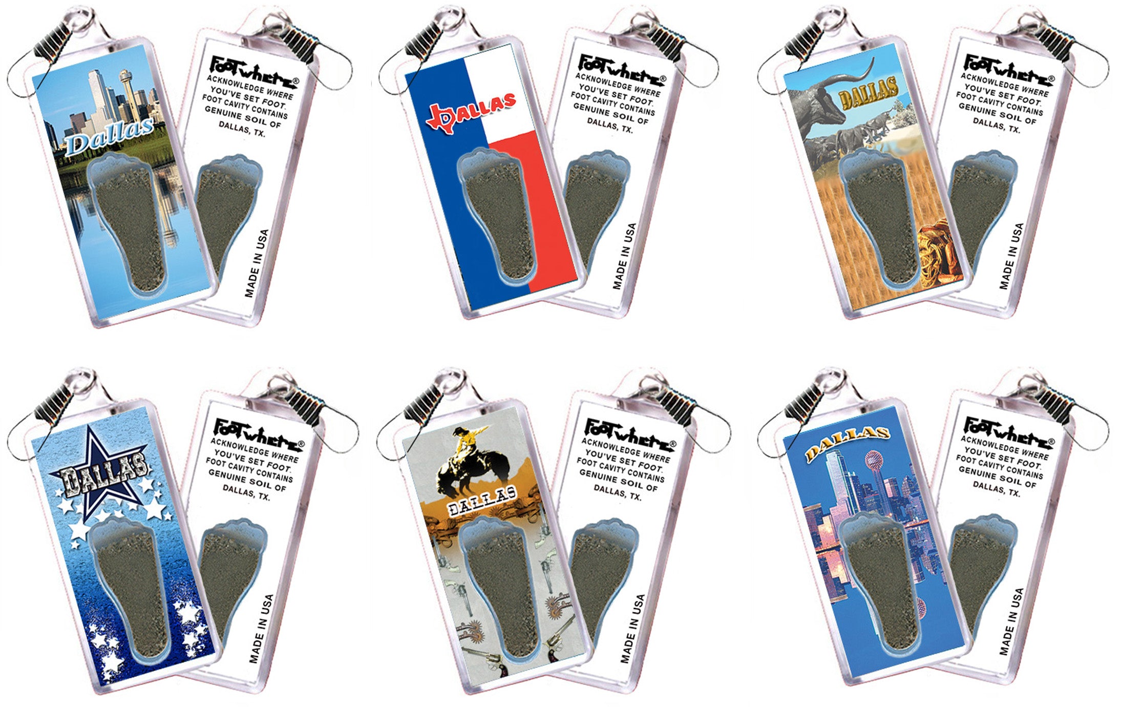 Dallas FootWhere® Souvenir Zipper-Pull. 72 Pieces/6 Assorted Styles. Made in USA