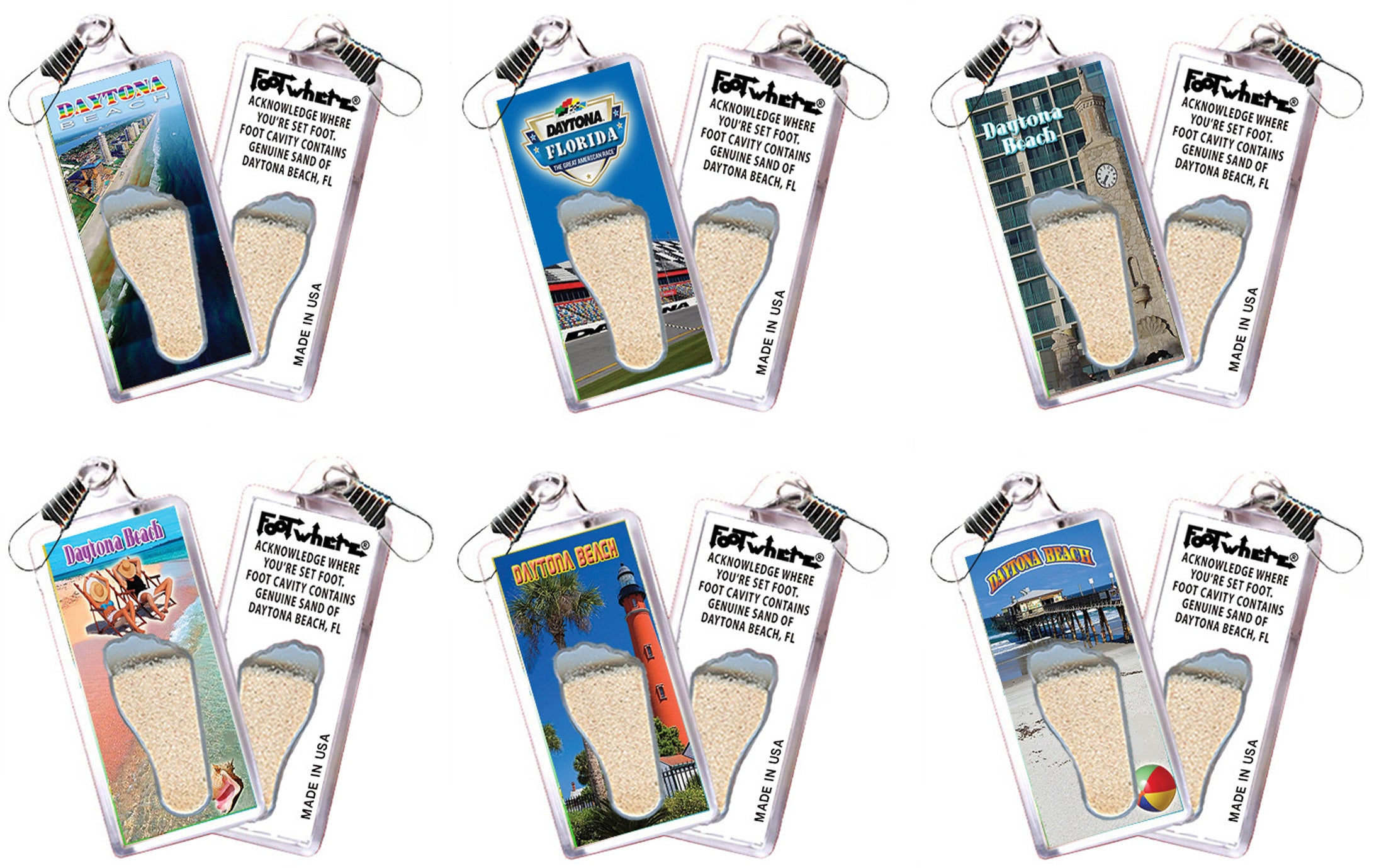 Daytona Beach FootWhere® Souvenir Zipper-Pull . 72 Pieces/6 Assorted Styles. Made in USA