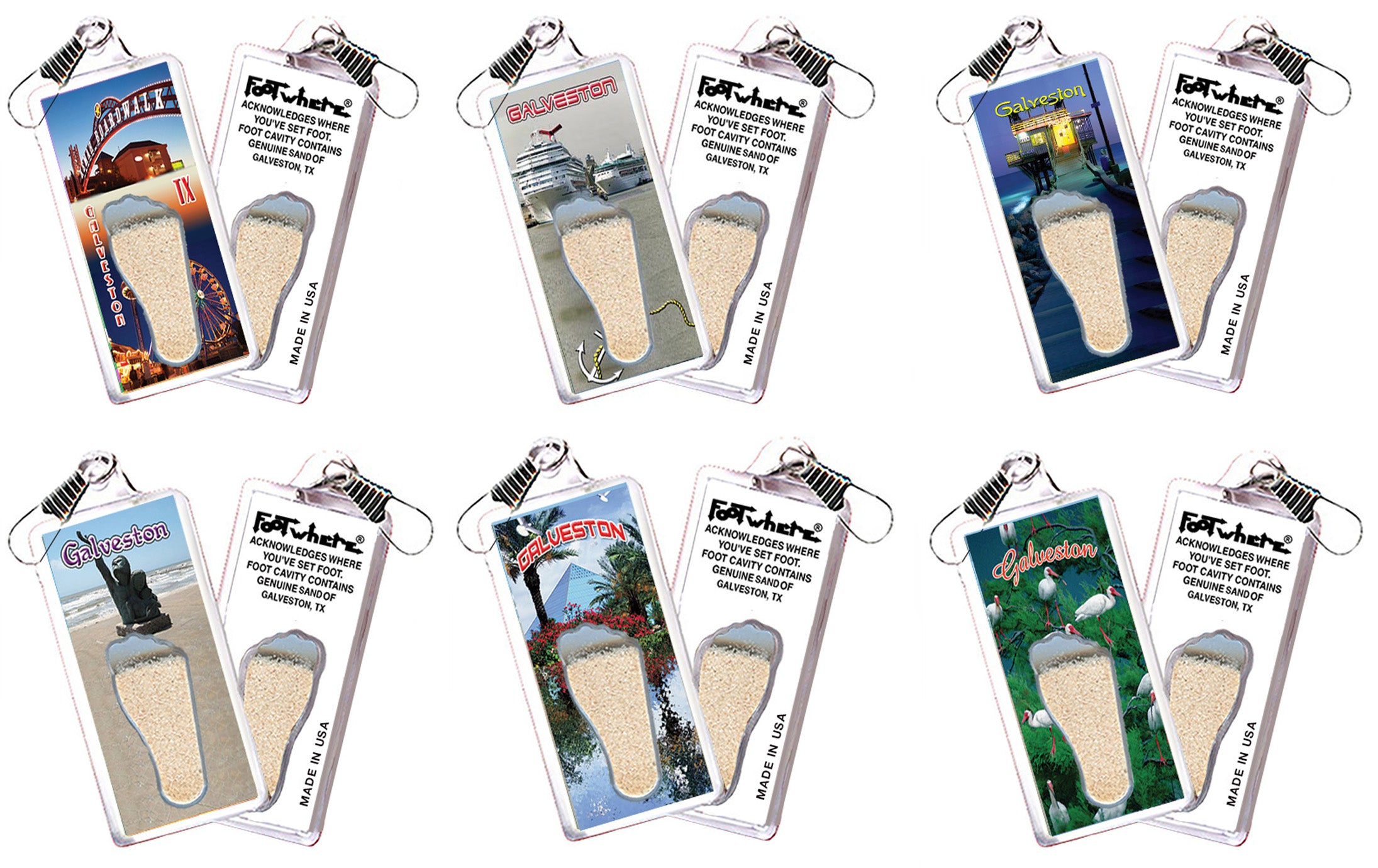 Galveston FootWhere® Souvenir Zipper-Pulls. 72 pieces/ 6 assorted styles.