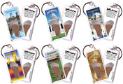 An ensemble of authentic Sacramento, CA FootWhere® souvenir keychains acknowledging where you've actually set foot. Foot cavity is filled with genuine Sacramento soil. Made of high-quality acrylic with high-resolution graphic insert showcasing the featured destination on the front and back. Protected for life between ultrasonically-welded halves. Start your travel collection today.